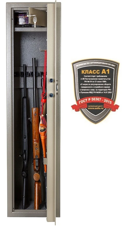 — По итогам тестов на степень устойчивости к взлому отнесён к классу S1 по ГОСТ Р 55148-2012, что соответствует классу оружейных сейфов А1 согласно ГОСТ Р 56367-2015.