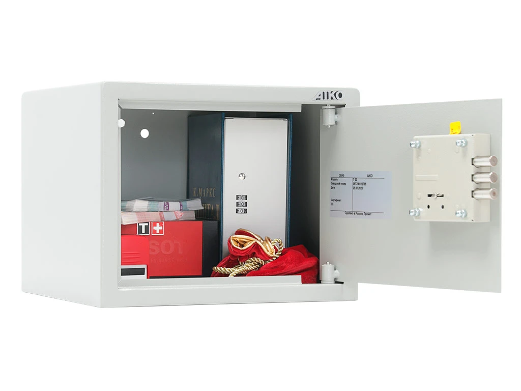 - — Офисный сейф Aiko T-23 имеет сертификат соответствия стандартам ГОСТ на начальную устойчивость ко взлому и соответствует требованиям МВД РФ к хранению огнестрельного оружия.